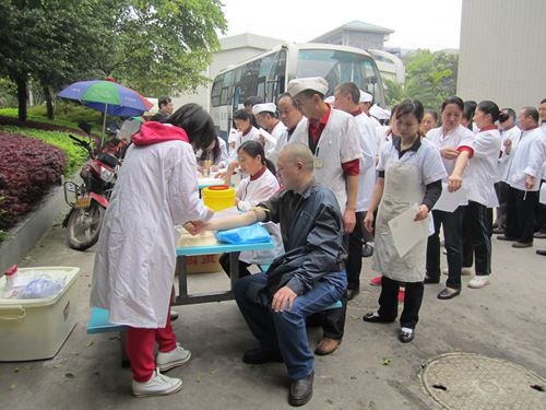 为确保学校饮食安全,4月9日上午,餐饮服务中心特邀请沙坪坝区疾控中心对大学城校区部分餐饮服务员工进行健康体检。