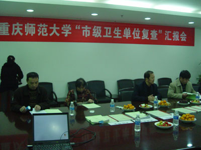 2010年11月25日上午,“市级卫生单位”复核检查工作组到我校沙坪坝校区进行两年一次的复核检查。复核检查工作组通过突击巡查、察看工作记录材料和听取校方总结汇报等,对我校环境卫生、环境打造、健康教育等各方面工作进行了全面考核,宣布我校顺利通过“市级卫生单位”复核检查。孙宇阳、张万春等同志陪同检查,张万春同志代表学校向复核检查工作组作了题为《巩固成果,扎实推进“五个校园”建设》的工作汇报。