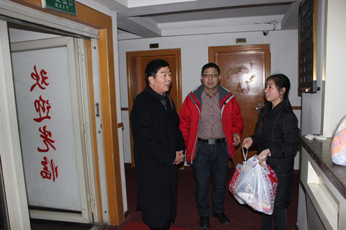 2014年元月29日上午,集团张万春总经理、康元洪书记带领班子成员、各中心负责人等组成的慰问小组,乘着带有丝丝春意的暖阳走访慰问了一直坚守一线的员工,与他们进行了亲切的交流,并送上了麦片,汤圆粉等慰问品和新年祝福。全体值班职工感谢集团及学校对他们的关心,表示将全心全意做好各项工作,并祝全校师生新年快乐,马年吉祥!寒假乃至春节期间,集团下属的餐饮服务中心、物业服务中心和宾馆共有110余名员工放弃春节与家人团聚的时刻,坚守工作岗位,为全校师生员工寒假及春节提供放心的后勤保障。