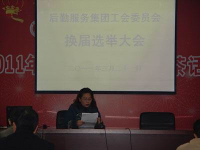 根据《重庆师范大学党委行政2011年工作要点》和重师校工[2011]4号文件的精神,后勤服务集团党政高度重视,广大职工积极参与,工会委员会在认真做好前期准备工作的基础上,于2011年3月21日下午2:30点在沙坪坝校区二会议室召开了换届选举大会。